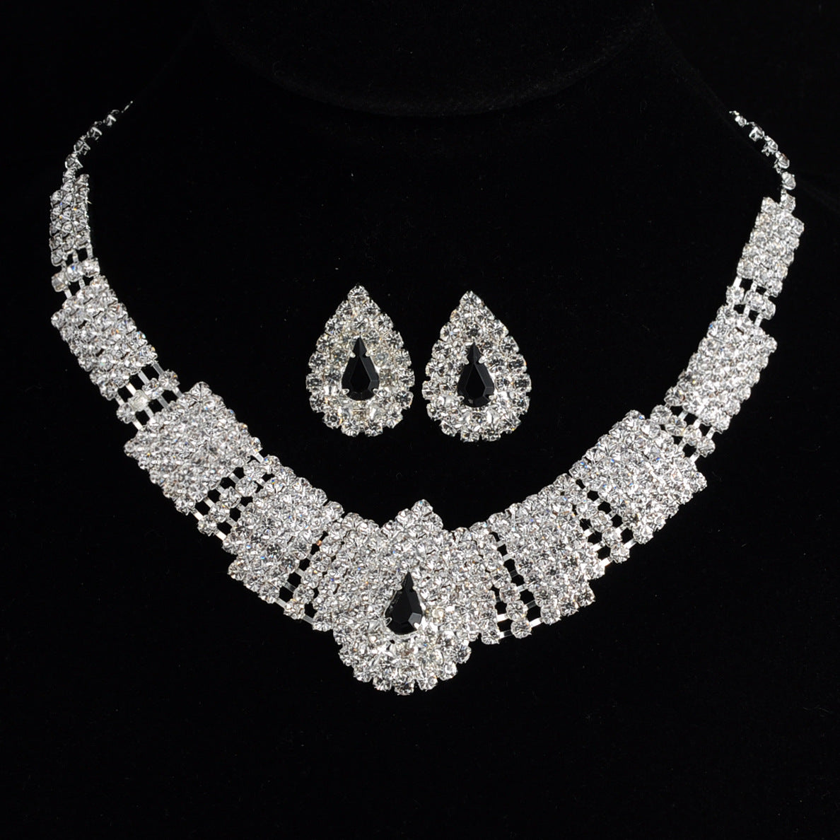 Cross Border E-commerce, Europe And The United States Exaggerated Full Drill Bridal Suite Necklace + Earrings, Wedding Jewelry Accessories