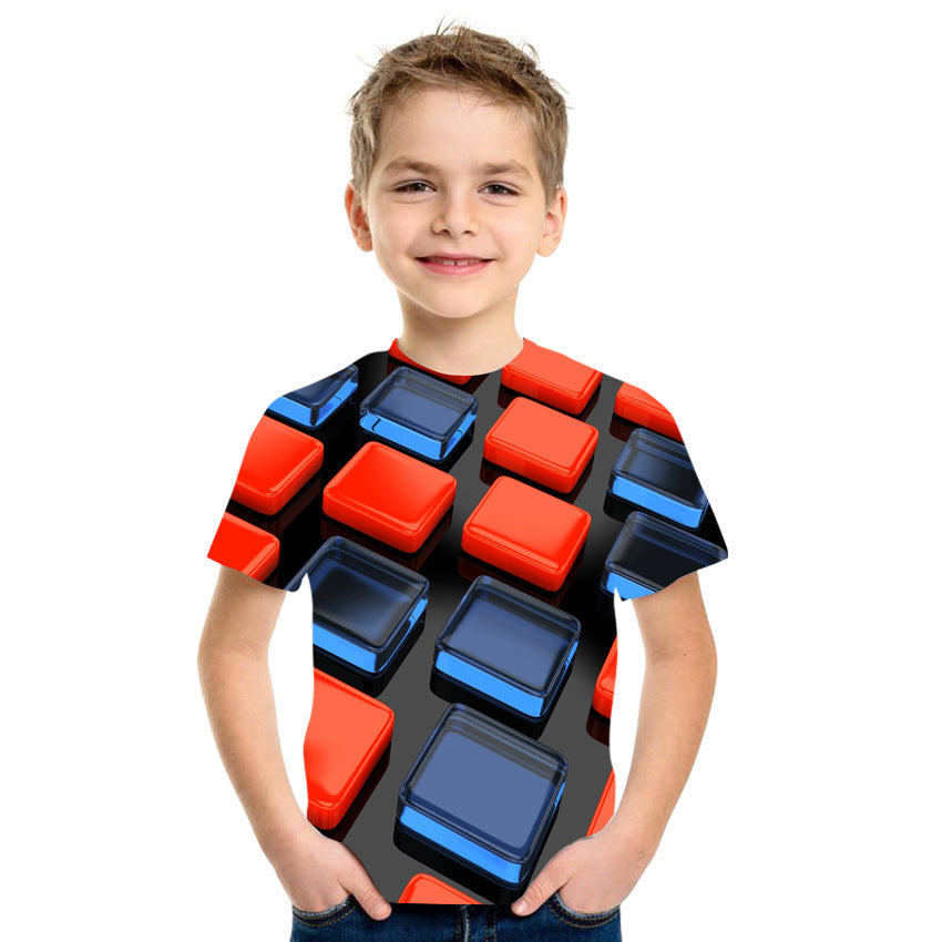 Red And Blue Square Men's T-shirt Short-sleeved Short-sleeved 3D Digital Printing